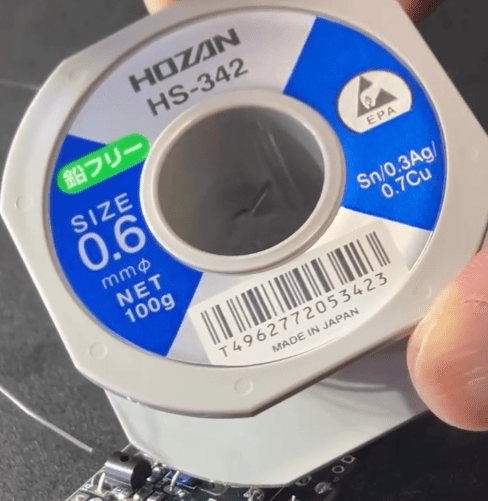 - 糸はんだは、部品がそこまで小型でなければ、細すぎず太すぎない0.6mmが扱いやすく、流し込みもしやすい印象です。