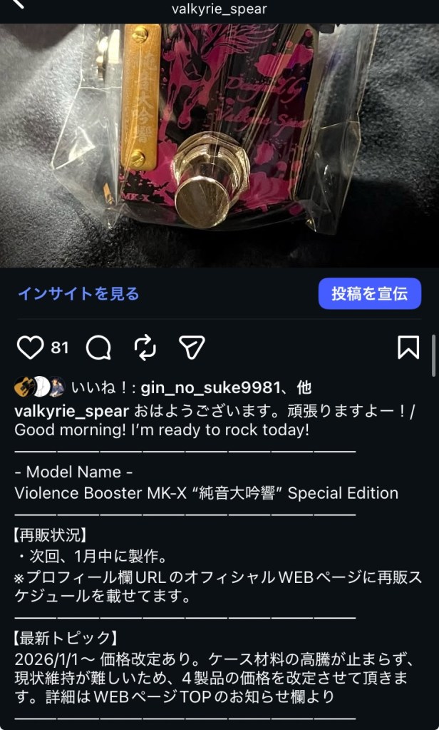 2/2 イケシブ(アンプステーション)へ出荷→次回、3月中の出荷予定 - Violence Booster MK-X :